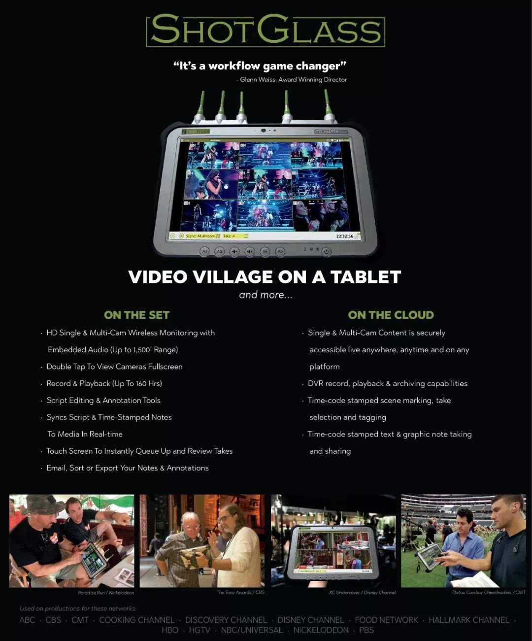 这是和好莱坞导演一起合作开发的ShotGlass“便携式无线高清影视现场制作系统”