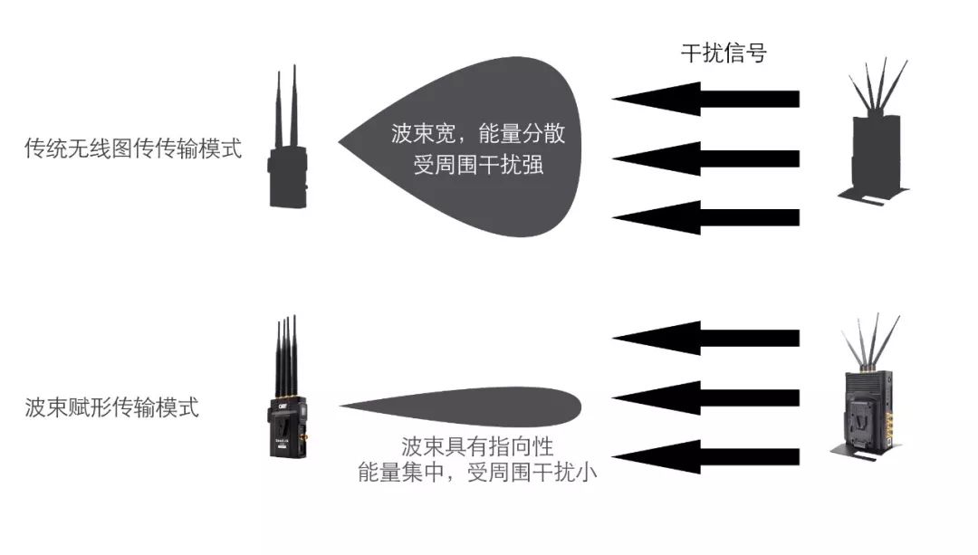 以前的图传产品也存在弊端,比如一路视频画面必须占用一个频道,在多机位情况下会出现频道互相干扰。