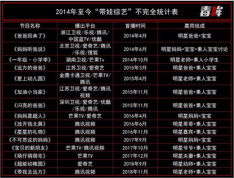 2014年至今“带娃综艺”不完全统计