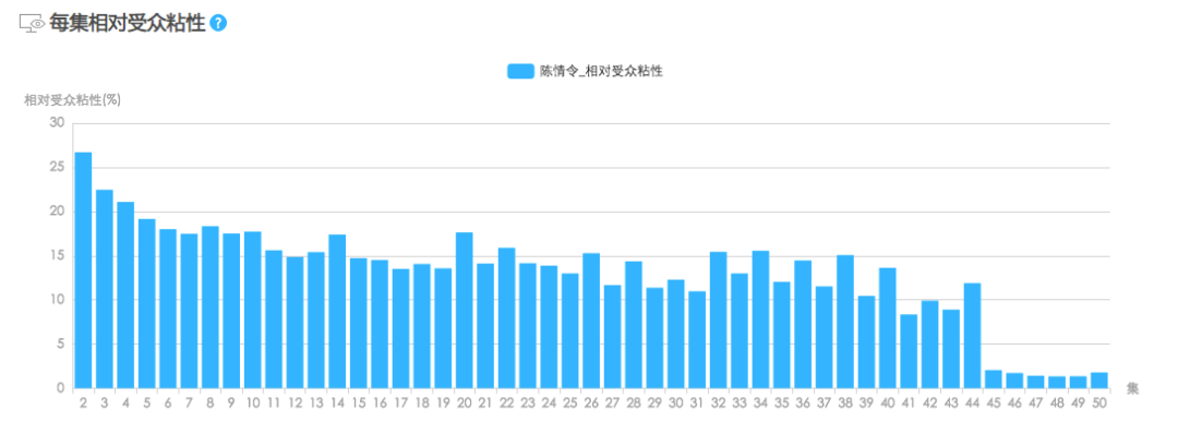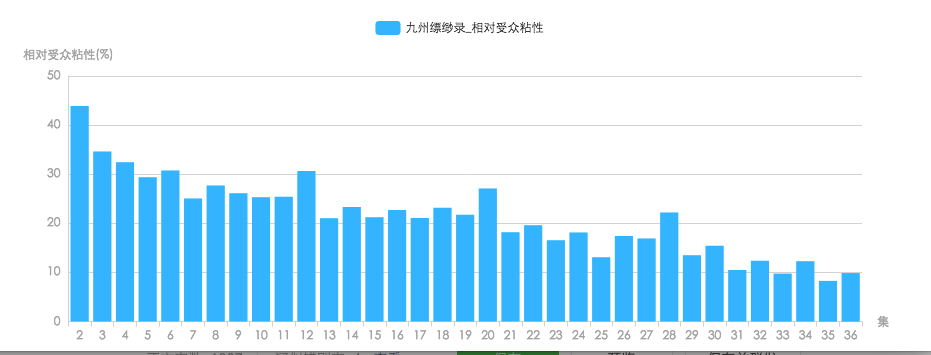 如果说《长安》与《陈情令》数据的差别,有部分原因是其题材本身受众多寡所致的话,即使是与《九州缥缈录》相对比,《长安》的受众粘度也是最低的。尽管《九州缥缈录》的受众粘度也呈下行趋势,但最差时,《九州》也依然有8.9%的粘度指数。