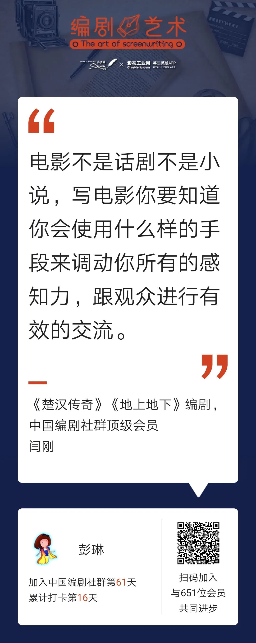 上方是包包的专属海报,识别上方二维码可以加入中国编剧社群,和更多国内优秀编剧一起进步。通过她的专属海报报名,可以获得30天会员权益赠送哦!