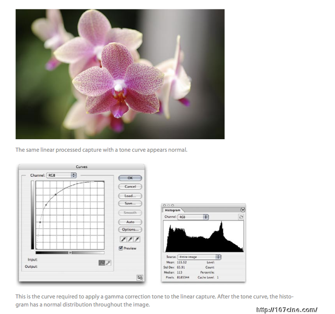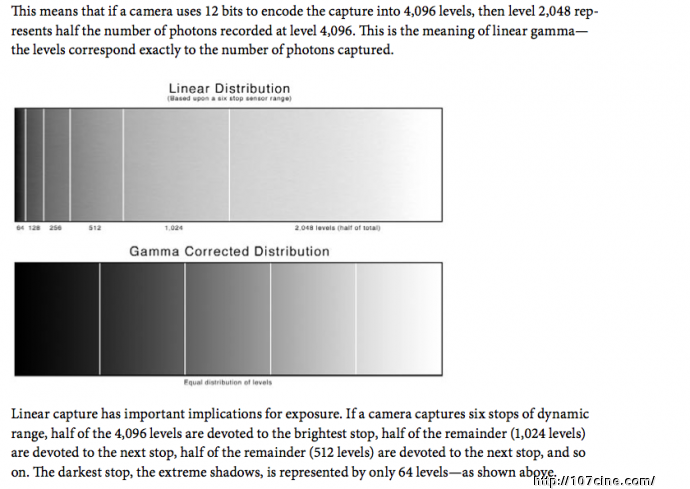 这意味着如果数码相机采用12位(Bit)编码采集相机原始数据,那么亮度信息会被分割成4,096级色阶(Level),其中2,048级表现为4,096级色阶存储光量的一半。这就是线性Gamma的含义——色阶级数与对应采集到的光量完全符合。