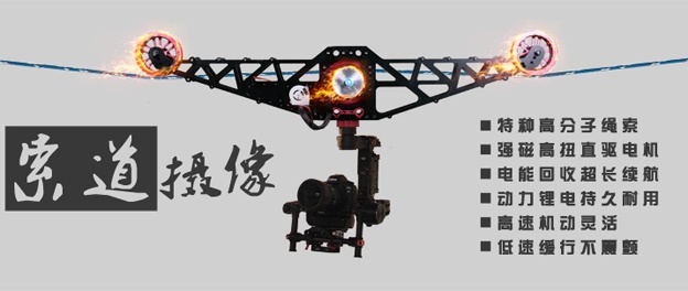 专业研发生产轻型索道摄像系统,搭建方便快捷,自带动力,拍摄范围可达上百米,运行无噪音,低速可实现慢走效果,高速可达到40km/h,是与摇臂轨道航拍搭配使用的新型影视器材。