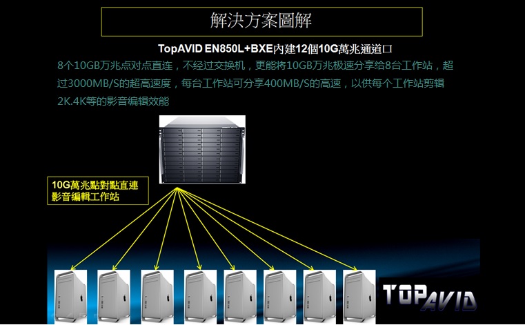 TOPAVID 12通道万兆直连磁盘阵列 12通道雷电万兆共享组网高清后期剪辑系统