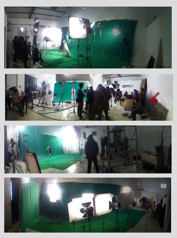 影棚使用面积200平米,层高7米。拍摄区宽12米,长15米。配备电影聚光灯、三基色灯、红头灯、魔术腿、蝴蝶布、绿布、蓝布,白色无影墙。