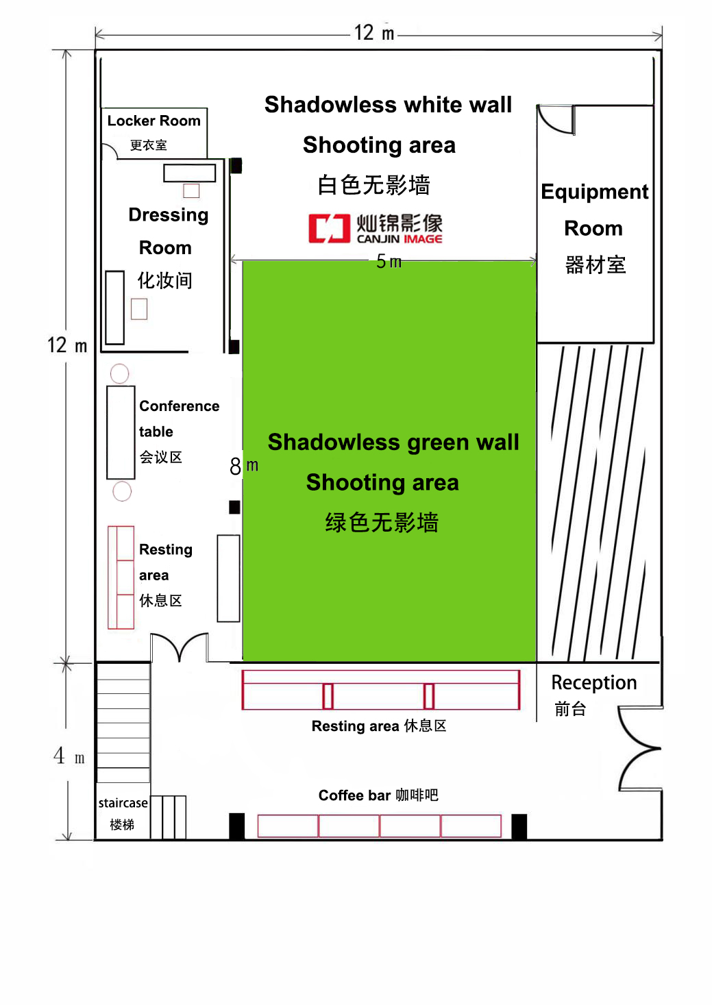 摄影棚新装修,内设拍摄区(有无影墙)、化妆室、会议室、办公室、休息处。 影棚介绍:面积200平米,白棚拍摄区12米x4米,绿棚拍摄区9米x4米,挑高5米。