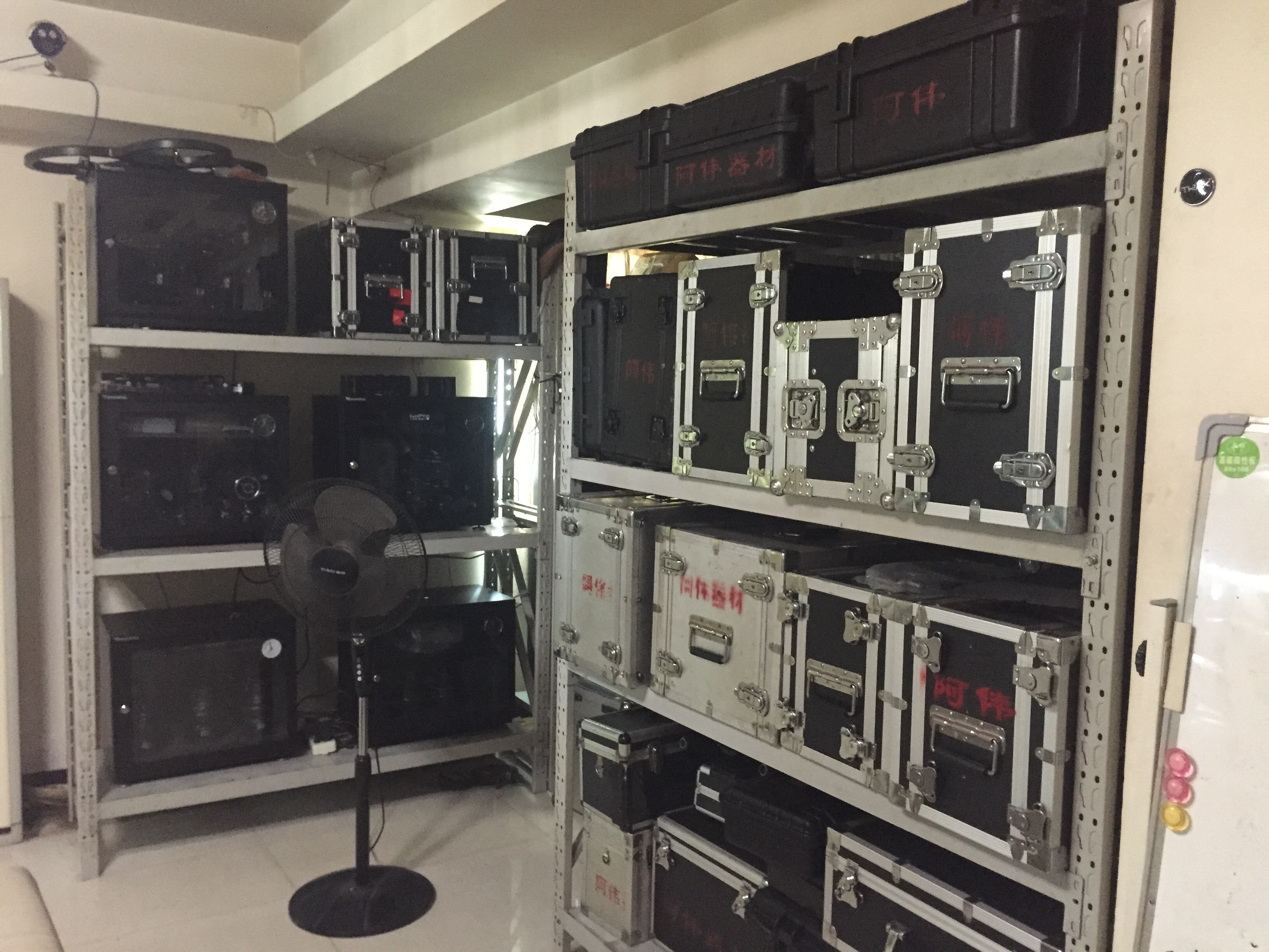 年底兄弟们在仓库前维护灯光器材