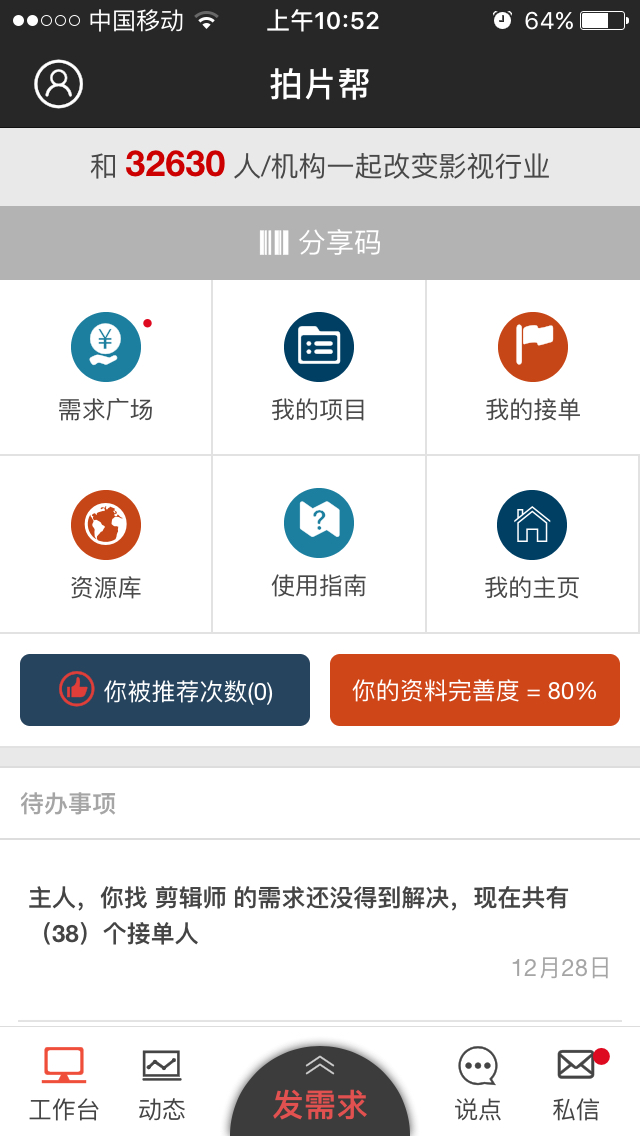 拍片帮App1.4.1版本已更新发布,新增分享码、我的项目管理,让你的业务来得更得心应手