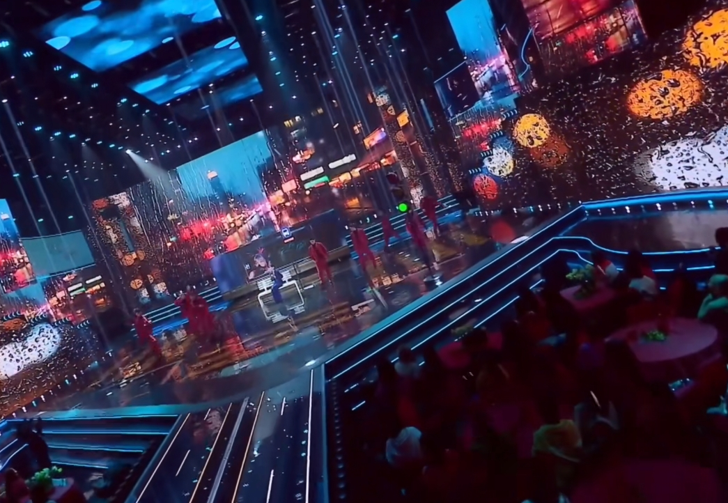 在2025蛇年粤港澳大湾区春节晚会上,周笔畅以一首粤语歌曲《毛毛雨》唤起在外游子对家乡的思念与归属感。这首歌曲不仅以温柔细腻的旋律勾勒出漫步香港街头的沉浸感,更通过强氧虚拟现实现场制作解决方案,将“飞落的毛毛雨”等AR虚拟元素与舞台实景无缝
