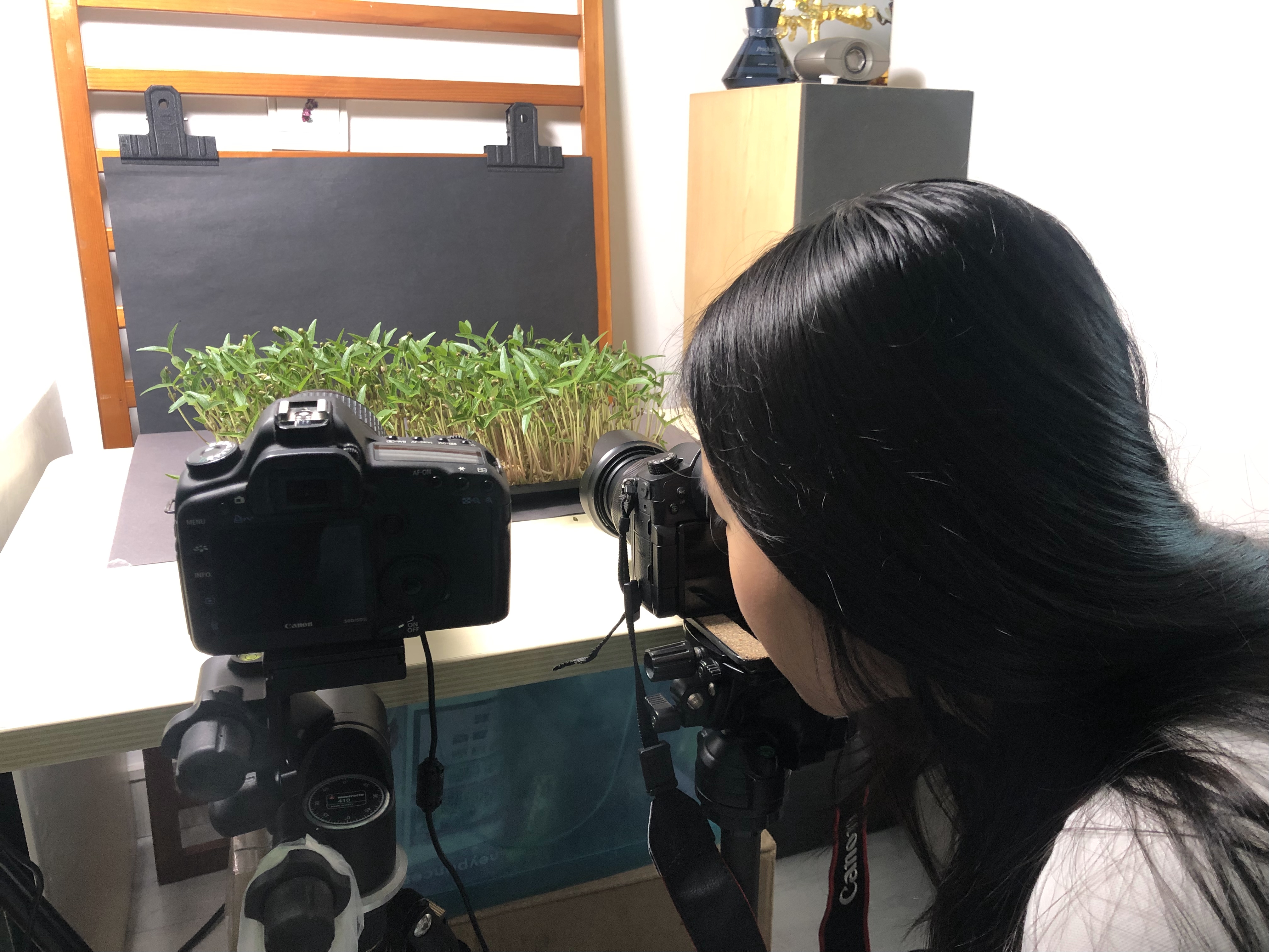 整个拍摄历时将近8天/192小时,不间断拍摄。用了2台相机分别从不同景别,间隔5分钟进行延时拍摄。素材70G左右。计划拍摄之前没有想过拍这么久,但看到开始几天的生长过程是如此的奇妙和有趣,才决心拍摄整个成长过程。幕后拍摄花絮照片