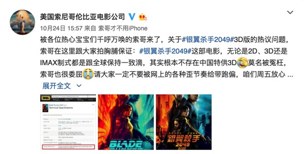 文/江宇琦、师烨东 文章首发于:壹娱观察(微信ID:yiyuguancha),文章发表已经取得授权。 “之前只有3D的密钥,今天发行方又给我们拷了2D的秘钥过来。周五《银翼杀手2049》上映时,我们会排2D版本。”北京市某影院经理昨日