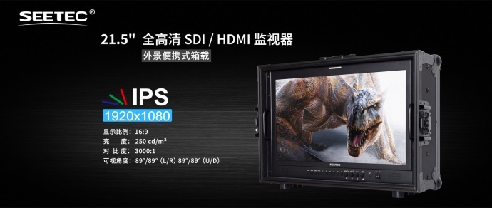 视瑞特21.5寸 IPS屏全高清1920x1080 对比度3000:1 3G-SDI/ HDMI外景便携箱载式监视器 P215-9HSD-CO SEETEC专业广播级液晶监视器,已经广泛应用于各级电视台的新闻制作、播出机房和电视转播车等
