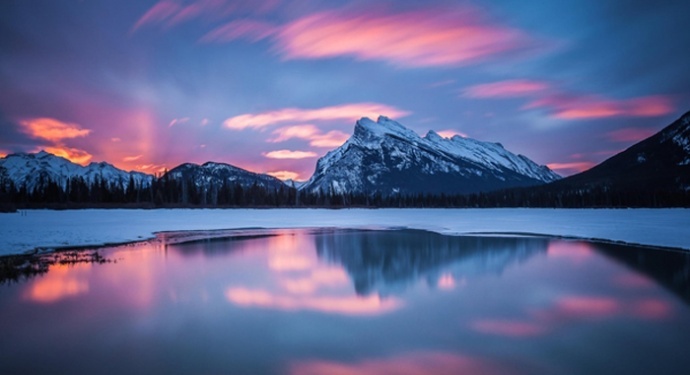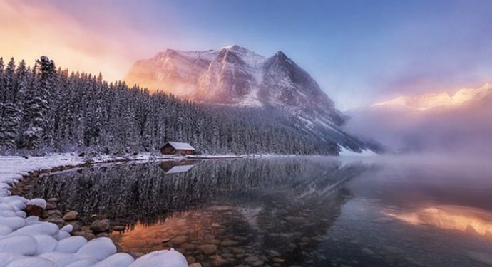 落基山丰富充实的摄影题材,势必收获满满 【朱砂湖】:朱砂湖畔有温泉,散发惊人的热量,一旦气温骤降,整个湖面都会在日出时分被烟雾笼罩,伴随着金光穿透的一瞬,冰雪世界就像被点燃一般。 【露易丝湖】:露易丝湖在冬天有一处水塘不冻,并且清澈的足见