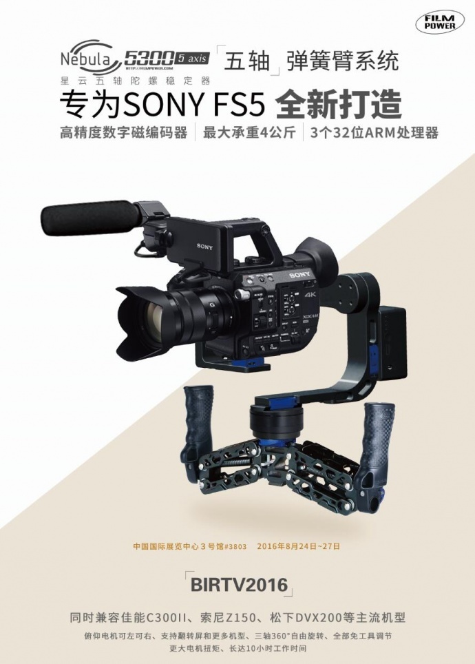 影能首款增稳摇臂丨FS5五轴稳定器丨亮相BIRTV2016