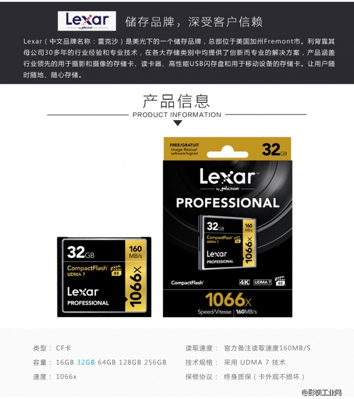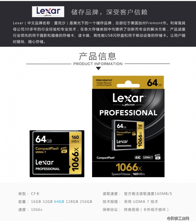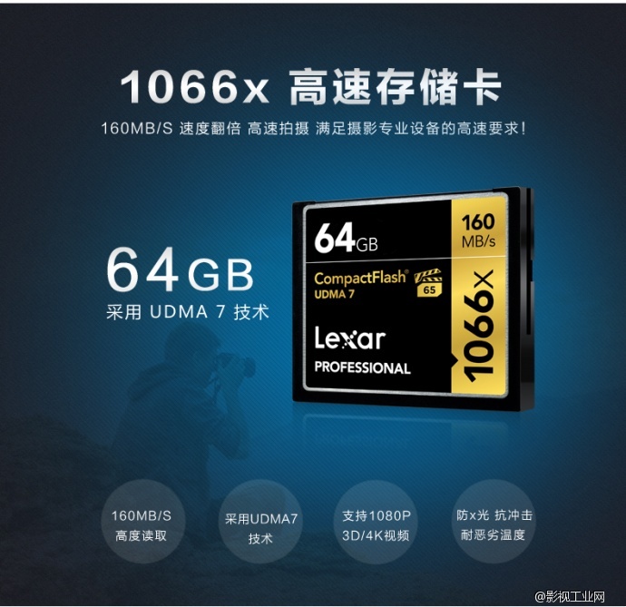 雷克沙Lexar 1066x 160MB/s CF64G存储卡