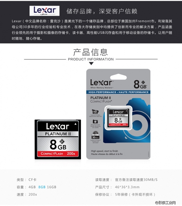 雷克沙Lexar 200x 30M/S CF8G存储卡