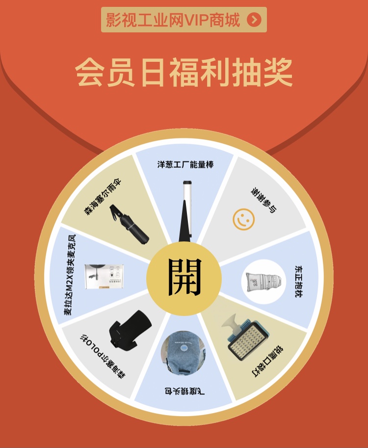 每月18日为影视工业网99VIP设备社群会员日,免费抽奖、特惠产品福利多多!识别图片二维码,会员可以免费参加抽奖!开通会员,还能每月都参加大转盘抽奖,参加各种福利活动!开通会员:https://107cine.com/vip/product