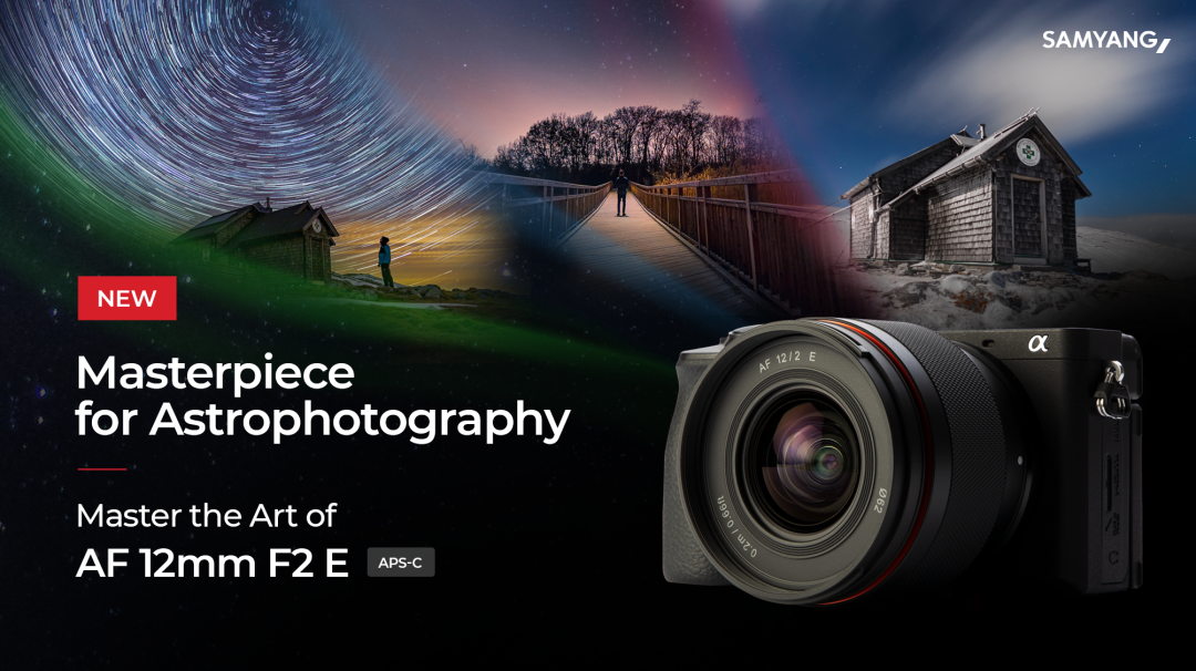 今天我们正式宣布,森养首款专为半画幅尺寸传感器设计的自动对焦广角定焦镜头AF 12mm F2 E。这种新型自动对焦定焦镜头的视角等效于35mm全画幅下的18mm镜头。 AF 12mm F2 E提供明亮的F2光圈,可在拍摄天文摄影时