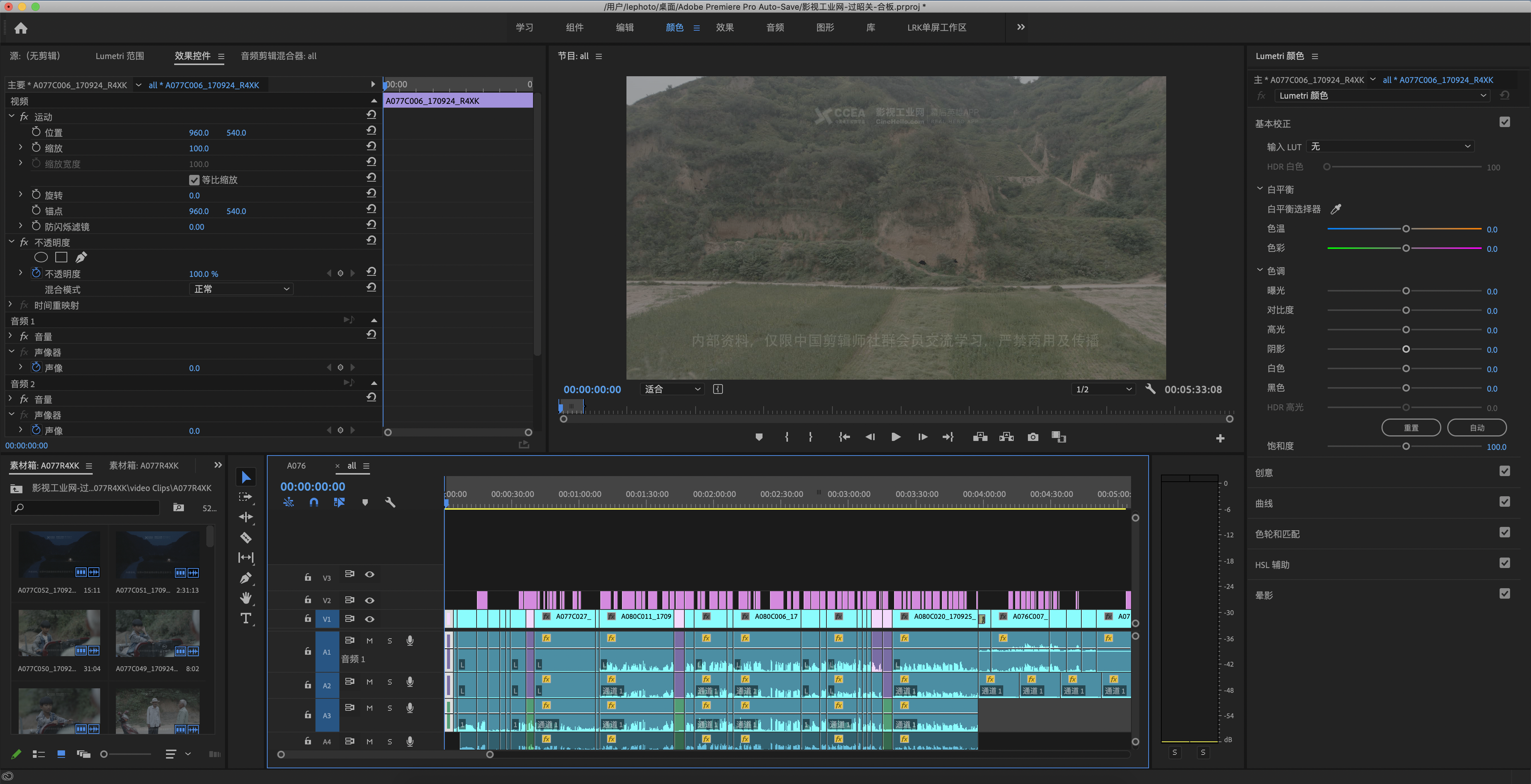 剪辑工序分享我使用的是Pr进行剪辑工作,感谢盧润科同志提供的合板文件,直接导入xml省下不不是对位的时间。工作流畅:1:将项目进行分类,建好相应的文件夹:声音,项目,视频。2 :我会把一场戏所有素材都放到一条时间线上,在时间线上对时间进行整