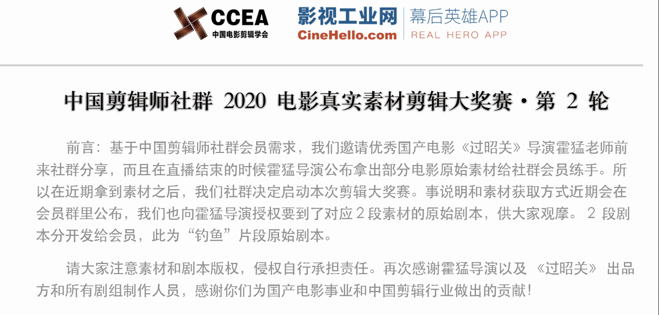 中国剪辑师社群会员3群大于-中国剪辑师社群2020电影真实素材剪辑大奖赛资格赛