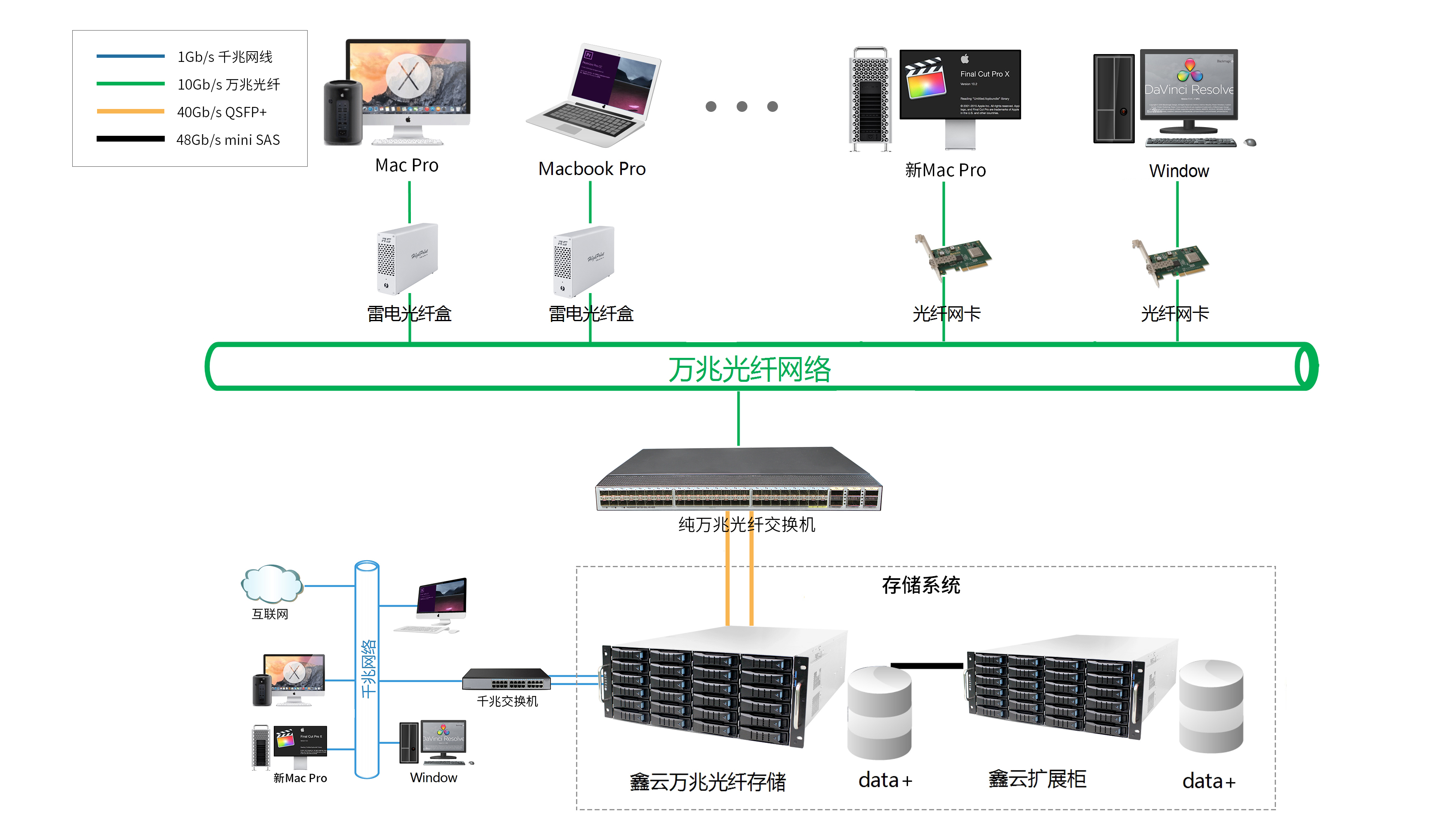 大家好,相信好多朋友都有遇到在视频编辑时丢帧、卡顿的现象;也经常面对庞大的素材频繁导入导出或者寻找半天的情况,更有一些朋友因硬盘损坏导致数据丢失导致浪费大量的时间精力、金钱。 鑫云万兆共享阵列,数据统一存储,支持Windows电