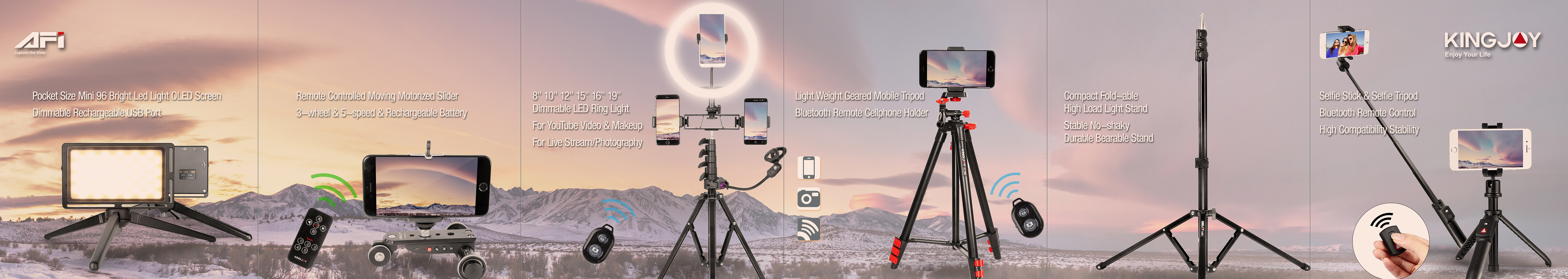 2019香港环球手机电子展(秋季)在2019年10月18日-21日在香港亚洲国际博览馆终于完美落幕了。本届展会KINGJOY劲捷受邀出席,为来自世界各地的参展人士展现源自劲捷摄影器材的神奇魅力。本次劲捷所展示的主要是旗下的专业三脚架、稳定