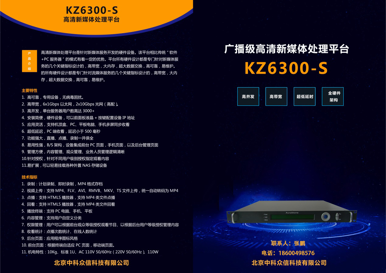 直播点播系统 高清新媒体处理平台是一款专门针对流媒体服务开发的硬件设备。传统“软件+PC服务器”的模式有着一定的优势。所有硬件设计都是专门针对直点播服务的几个关键指标设计的,高带宽,大内存,超大数据交换,高可靠,易维护。 高清新媒体处理平台