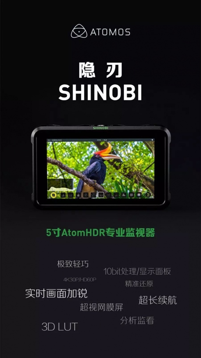 Atomos Shinobi 隐刃 1000尼特超高亮度5英寸HDMI监视器正式发布!