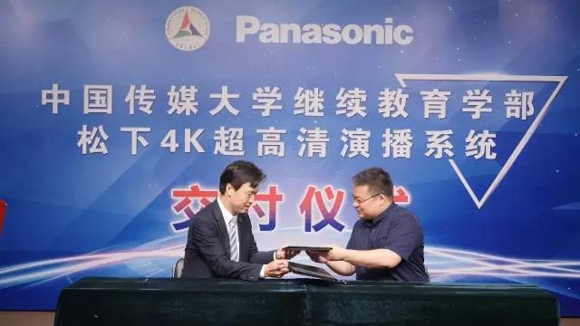 松下电器(中国)有限公司广播电视系统营销公司于今日,在中国传媒大学继续教育学部D5演播室隆重举行松下4K超高清演播室系统交付仪式。 中国传媒大学继续教育学部书记学部长董关鹏、继续教育学部副书记副学部长 屈善孝