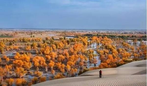 新疆流传有这样的说法:“胡杨林生而千年不死、 死而千年不倒、 倒而千年不朽。” 新疆胡杨林在我国乃至世界是分布最多的地区。全世界的胡杨百分之九十在中国,中国的胡杨百分之九十在塔里木盆地。仅塔里木盆地胡杨保护区的面积就达三千八百平方公里