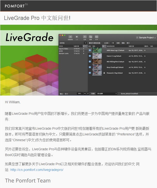 专业实时调色软件Livegrade Pro推出了中文版和中文网站