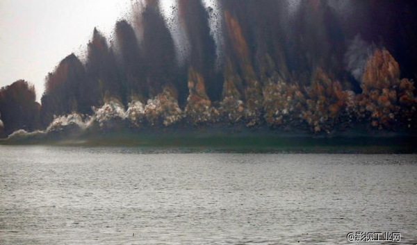 航拍湖北爆破分洪 无人机惨遭被震掉落湖底