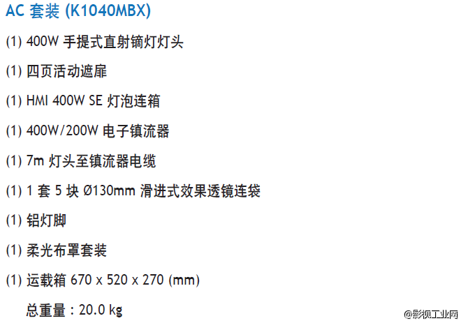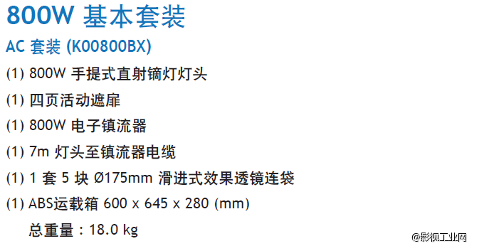 泛基亚 手提式直射镝灯套装 800W (基本套装)