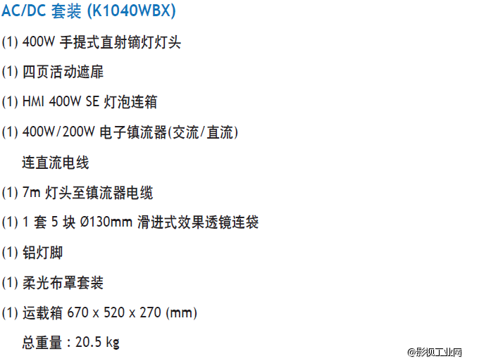 泛基亚 手提式直射镝灯套装 400W (完整套装)AC/DC