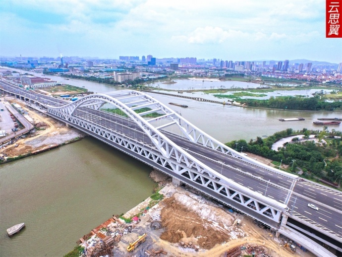 作为吴东快速路的重要节点,斜港大桥为全钢结构双层拱梁组合体系的特大桥,整体造型按照中国古典乐器箜篌进行设计,总长1062米,其中主桥长318米。 [flash]http://player.youku.com/player.php/sid/X