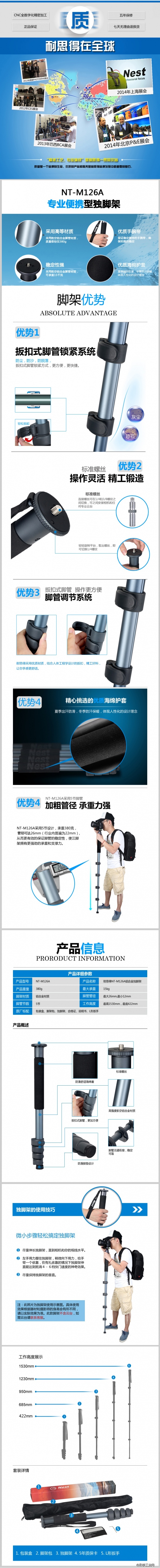 NEST耐思得NT-M126A独脚架