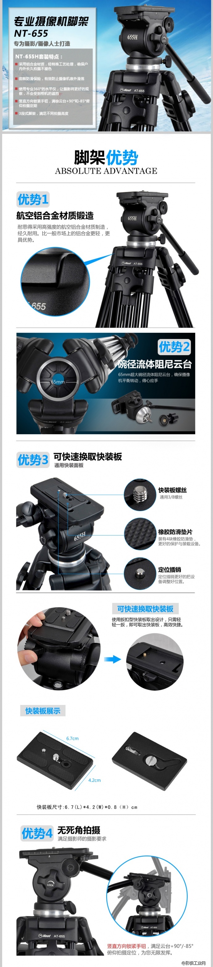 NEST耐思得NT-655摄像机三脚架