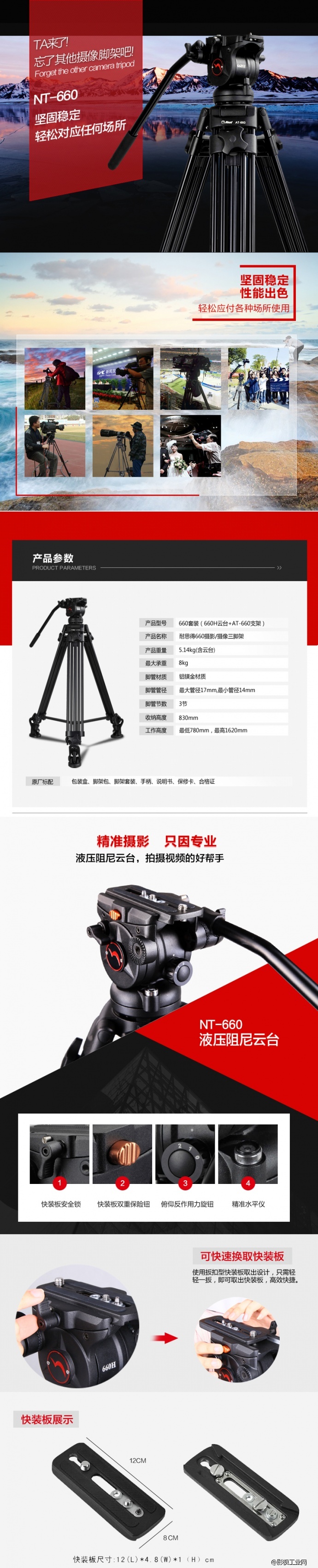 NEST耐思得NT-660AK-A专业摄像机三脚架