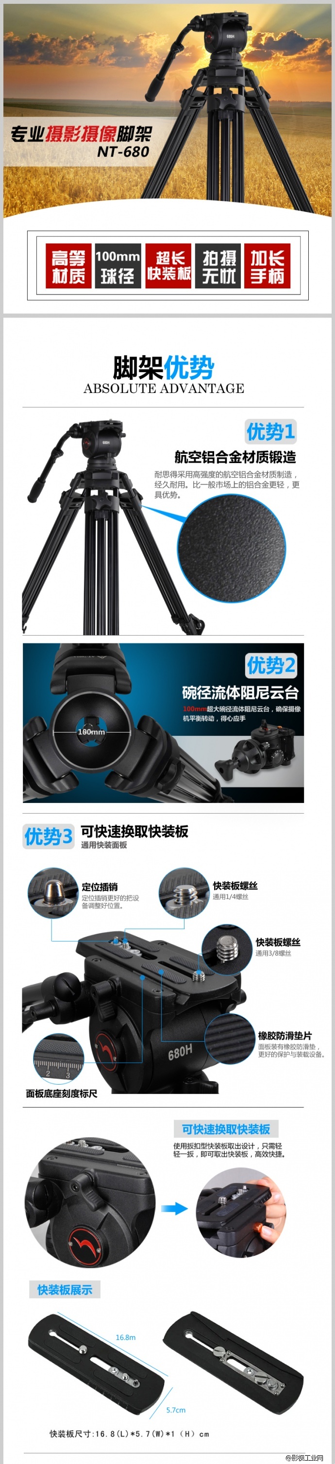 NEST耐思得NT-680摄像机三脚架