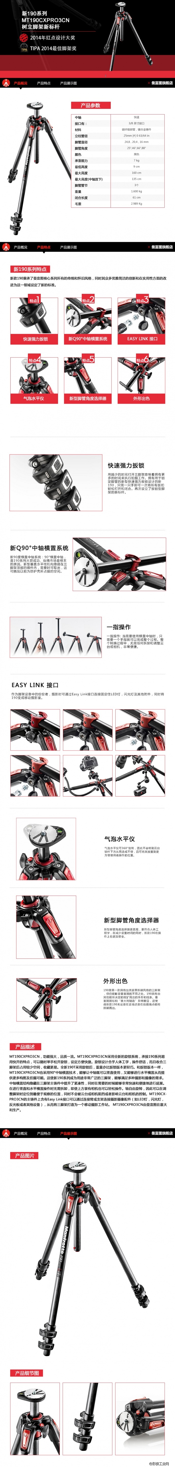 Manfrotto曼富图新190系列碳纤维三节脚架MT190CXPRO3CN