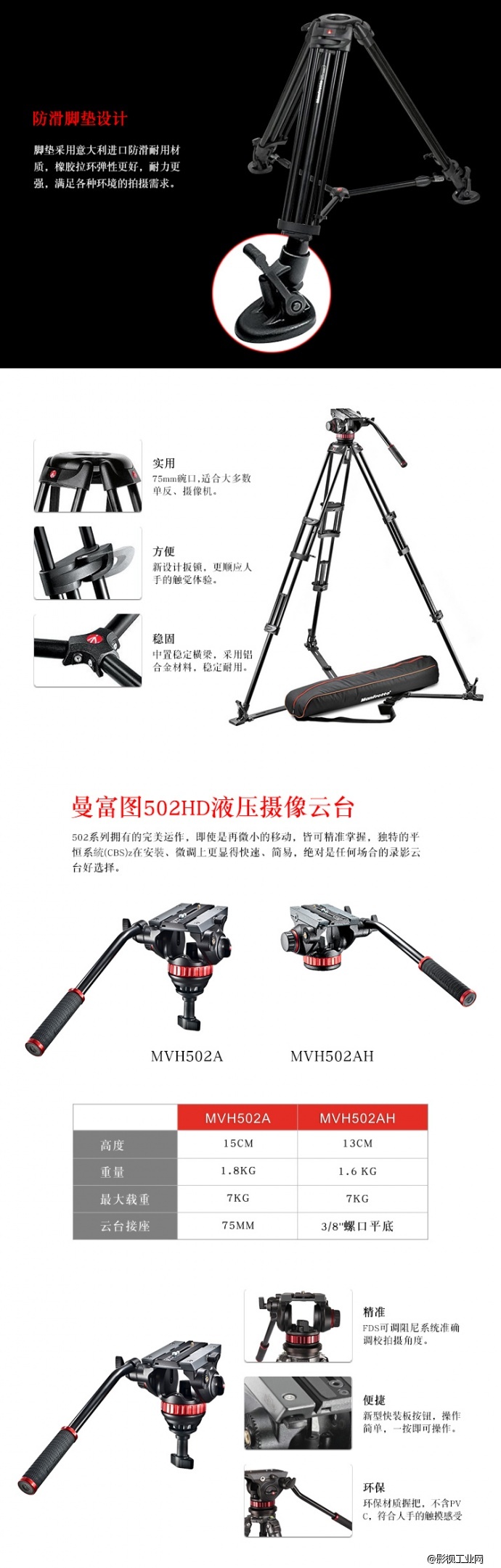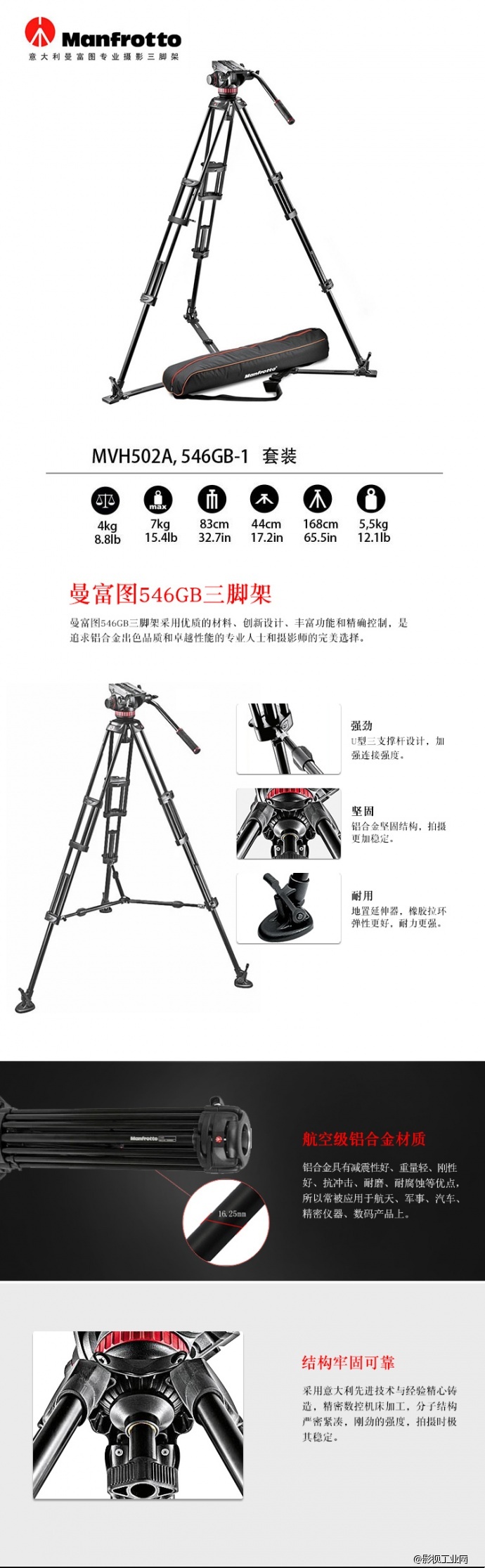 曼富图MVH502A+546GB-1地置双管液压摄像三脚架云台带脚架包