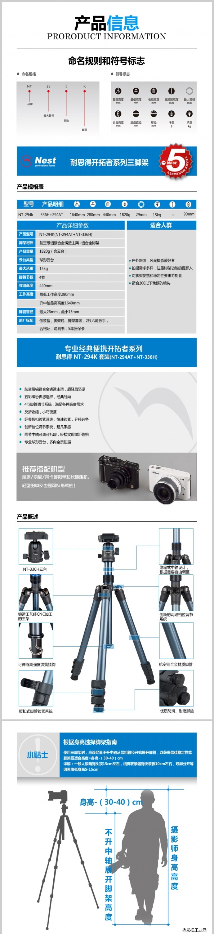 NEST耐思得 NT-294K专业铝合金脚架