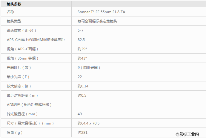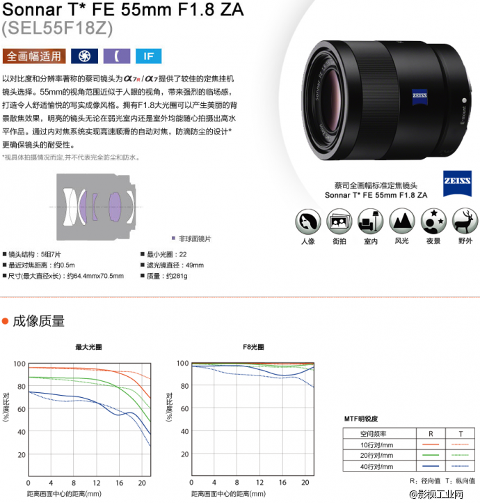 索尼(SONY)Sonnar T* FE 55mm F1.8 ZA蔡司全画幅镜头