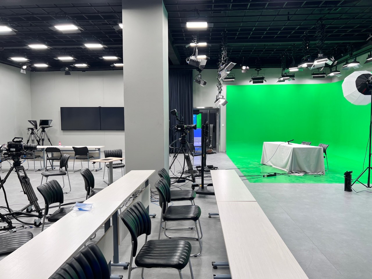 为满足日益增长的教学实践需求,实现人才培养计划,河南开放大学教学资源基地演播室应运而生。演播室设置实景区域、绿幕区域和蓝箱区域,充分满足新闻播报、影视制作、直播放送等教学实践场景需要和教学金课、校园活动等现场制作工作需求。 河南开放大学教