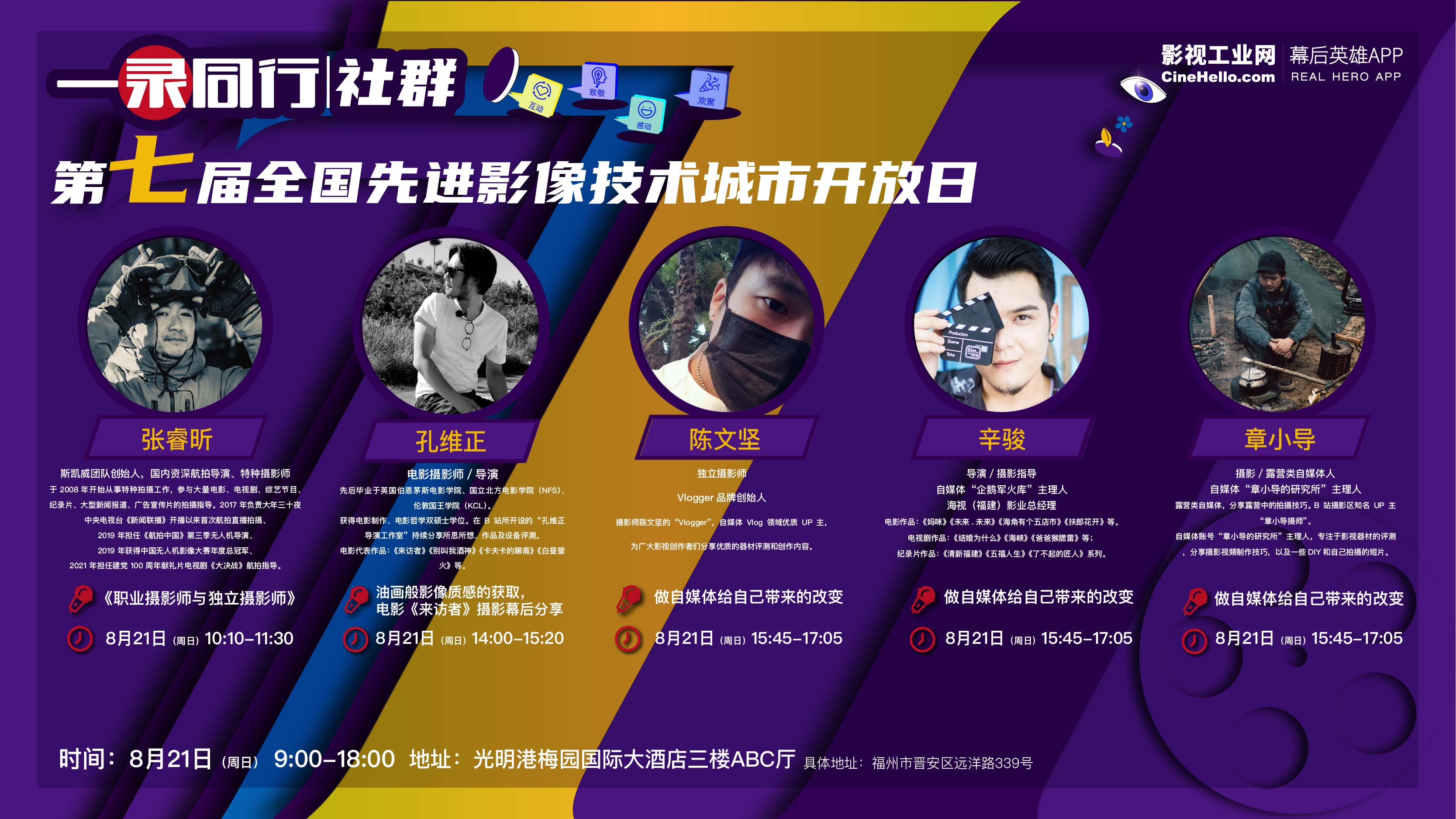 8月21日福州站,2022一年仅一天!《航拍中国》第三季无人机导演张睿昕国外电影双硕士学位电影摄影师孔维正自媒体达人圆桌对谈“Vlogger”的陈文坚、“企鹅军火库”的辛骏、“章小导的研究所”的章小导插入视频60+新品器材签到100%有礼物