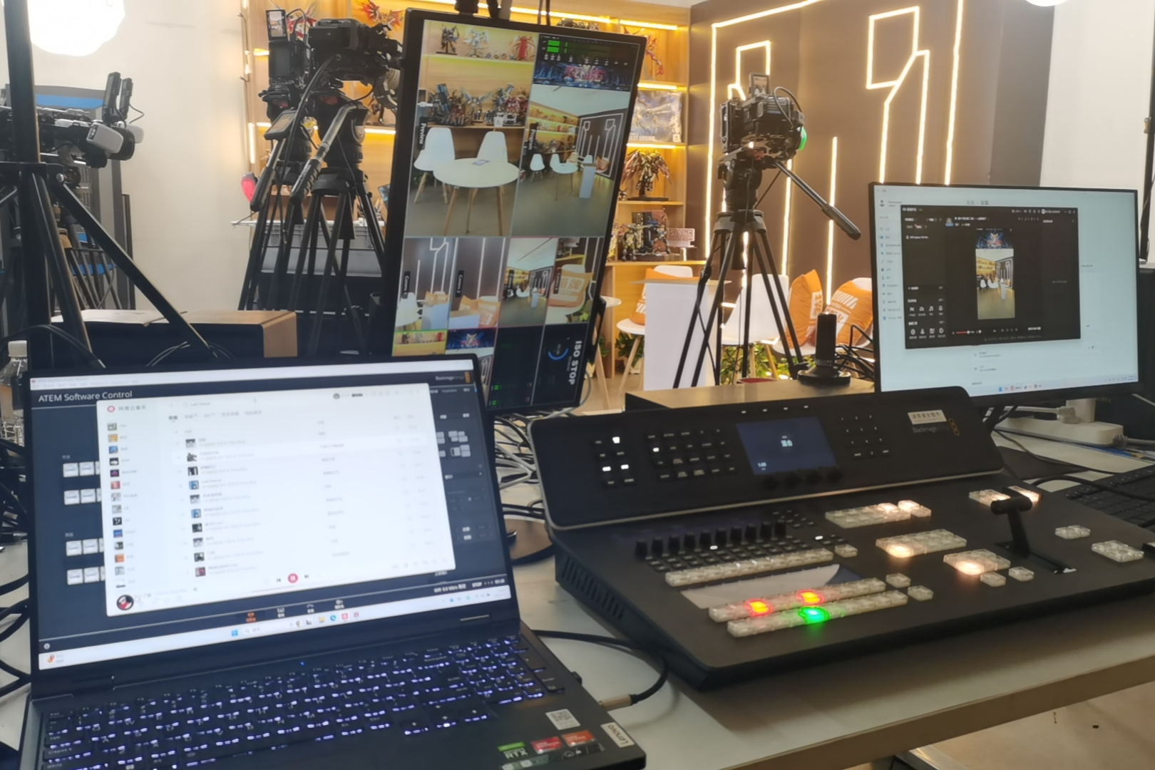 在《胶个朋友第二季》的直播活动中,Blackmagic Design的ATEM Television Studio HD8 ISO切换台凭借其高度集成化设计与专业的功能,成为现场制作的重要设备。 ATEM Television Studi