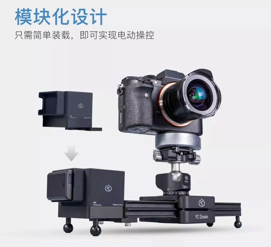 巧克力电动滑轨采用了模块化设计,分为巧克力滑轨和电动模块两个部分,组装起来非常简单,而且这两个模块可以分开购买,如果之前购买了我们的巧克力滑轨的用户就可以单独购买电动模块即可,大大减少了摄影设备更新的成本。