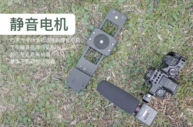 与大部分电动滑轨不同的是,巧克力电动滑轨采用了静音电机,除了紧贴着滑轨去录音会录进轻微杂音外,一般情况下都不会影响现场收音。