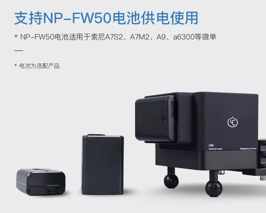 同时,巧克力电动滑轨可直接用索尼NP-FW50电池供电,一颗满电的电池约可给滑轨续航6个小时,并且巧克力电动滑轨还可以支持充电宝供电,这就不用担心续航问题啦!可以一次拍个爽!