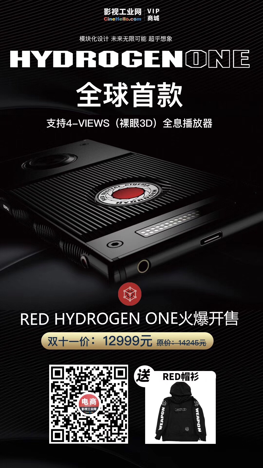这才是影视人都想拥有的一个手机----RED Hydrogen One, 识别二维码购买,再送RED 帽衫。